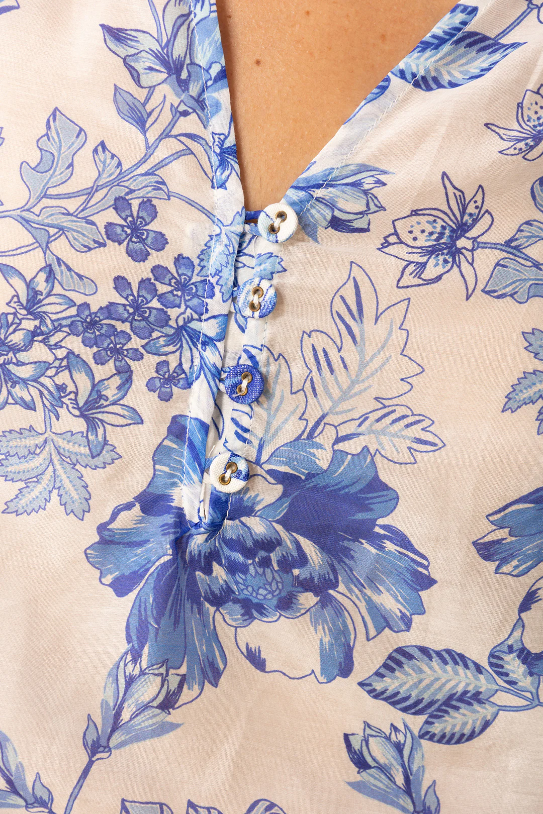 Buttons at front keyhole neckline.
