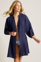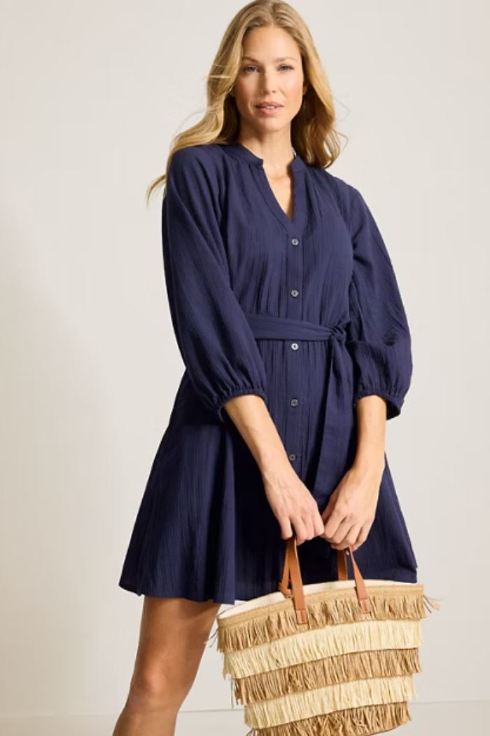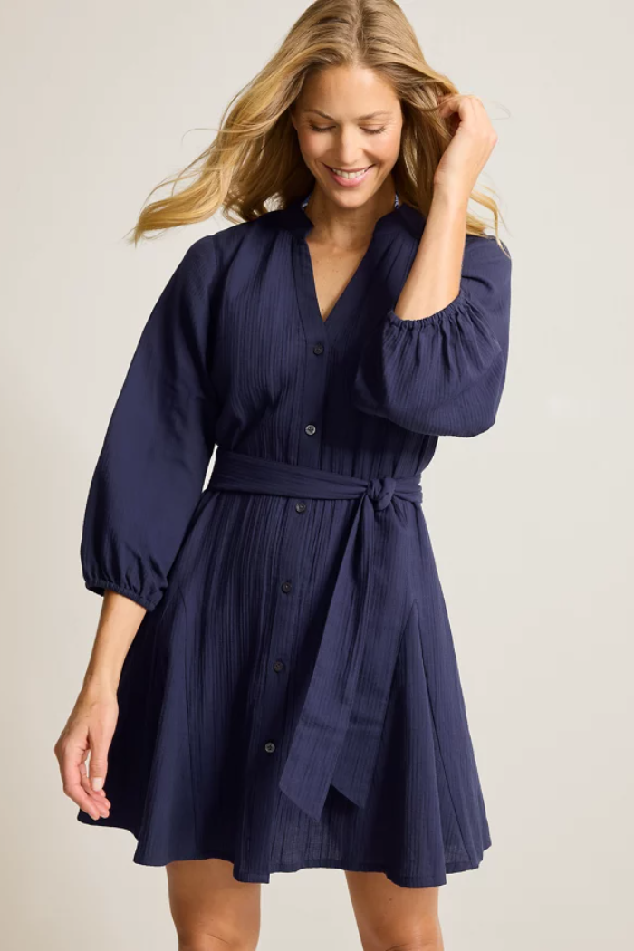 Effortlessly soft cotton and airy balloon sleeves inspire an elegant coverup shirt dress, complete with a matching belt that lets you customize your silhouette.