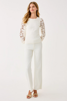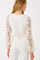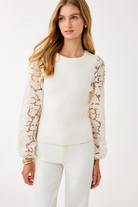 Straight fit top with a crew neckline and long unlined lace sleeves.
