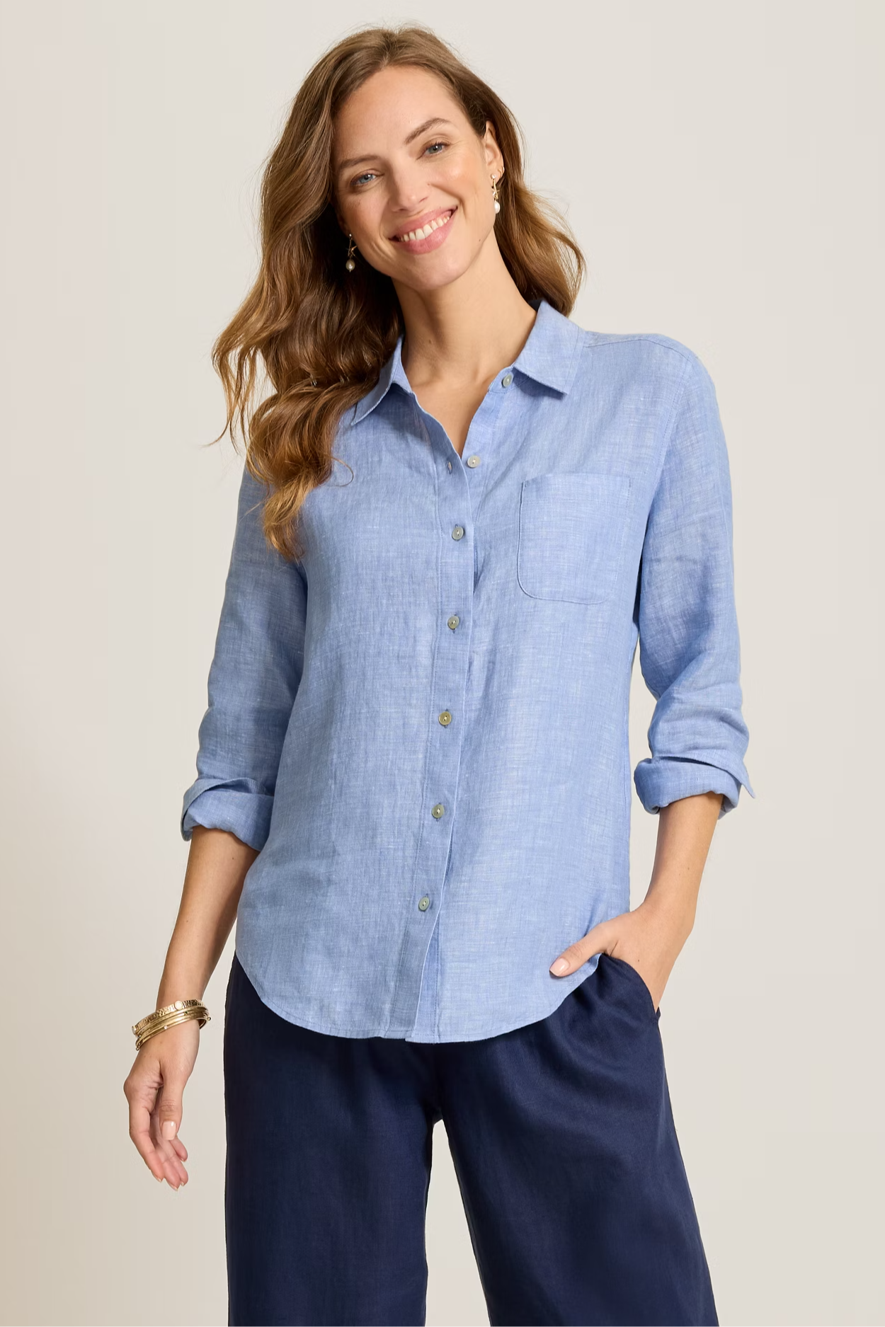 Our famously bestselling Coastalina linen is officially ready to relax… Now in a looser, more laid-back fit, the chic button-down silhouette you love feels a little more casual, while still offering an elevated look—and plenty of island spirit.