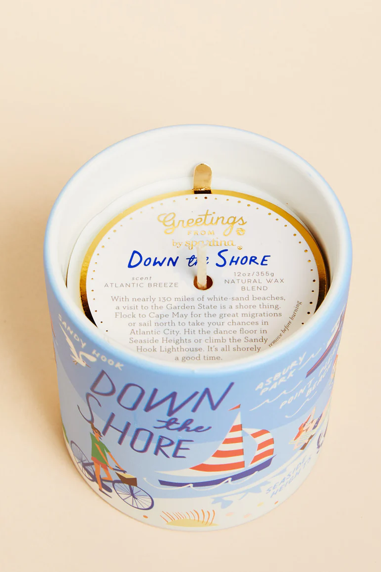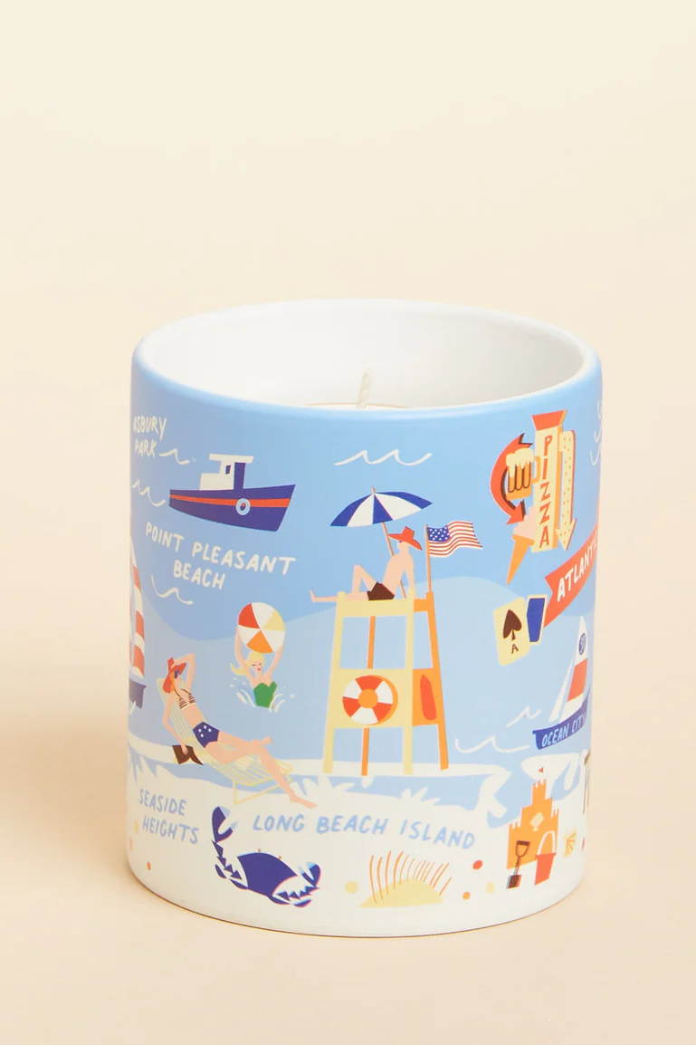 With nearly 130 miles of white-sand beaches, a visit to the Garden State is a shore thing. Flock to Cape May for the great migrations or sail north to take your chances in Atlantic City. Hit the dance floor in Seaside Heights or climb the Sandy Hook Lighthouse. It's all shorely a good time. Our Greetings From Candles burn with the fragrance of the Atlantic breeze, notes of sea salt, citrus, and coconut transporting you to the Jersey shores.