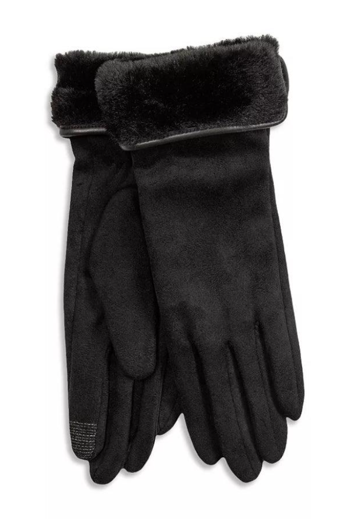 Stretch Suede Fold-up Faux Fur Cuff Gloves - Touchscreen