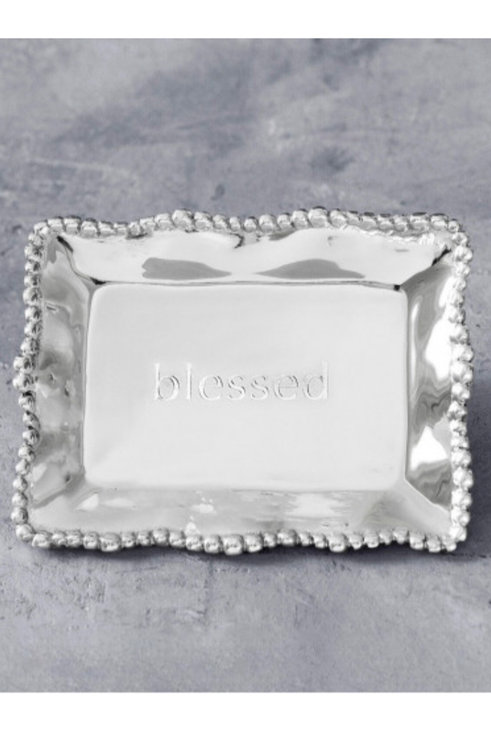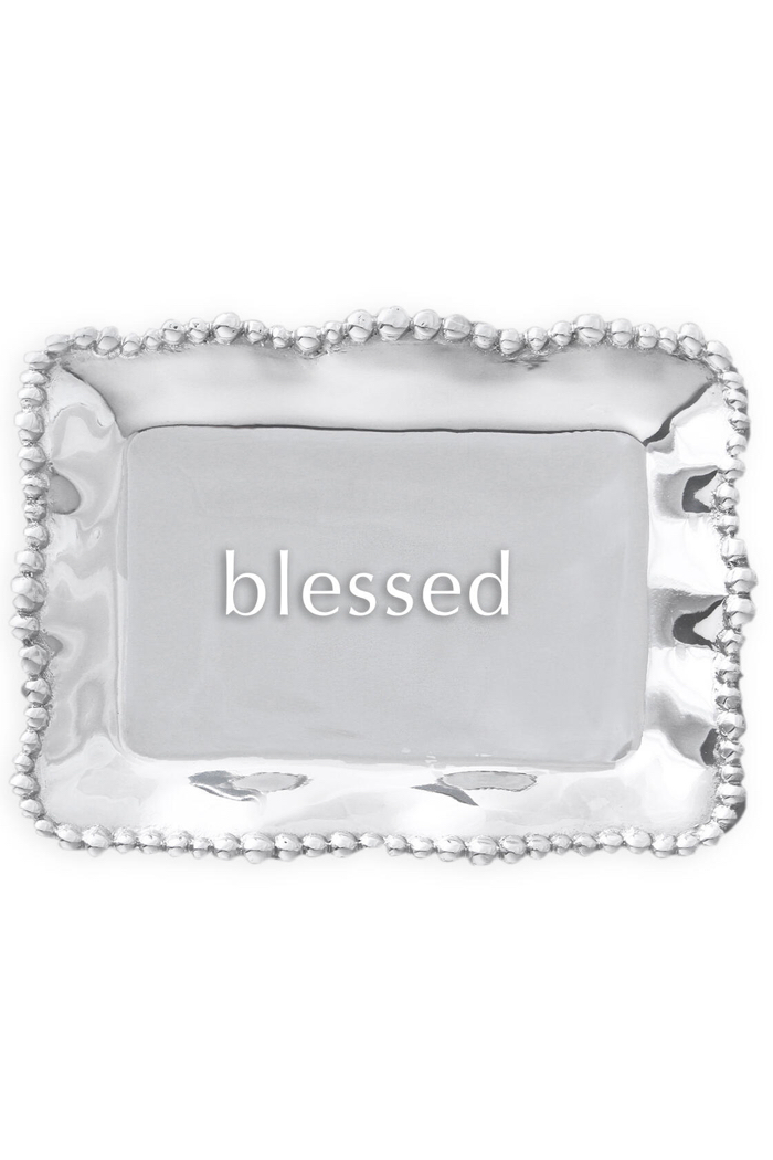 Blessed are the hearts that can bend; they shall never be broken."" - Albert Camus Express your feelings with this lovely GIFTABLES Pearl Rectangular Engraved Tray from Beatriz Ball. Engraved with the slogan, ""Blessed", this delightful mini tray is distinguished by its rich, hand finished surface, and practical size. Perfect on a desk, bedside table, or coffee table as a decorative accent.