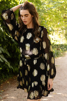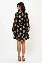 Flowing Georgette fabric embellished with eye catching jacquard gold florals all over. Flirty Short Dress lives up to its name. Don't miss out on its most festive makeover yet.