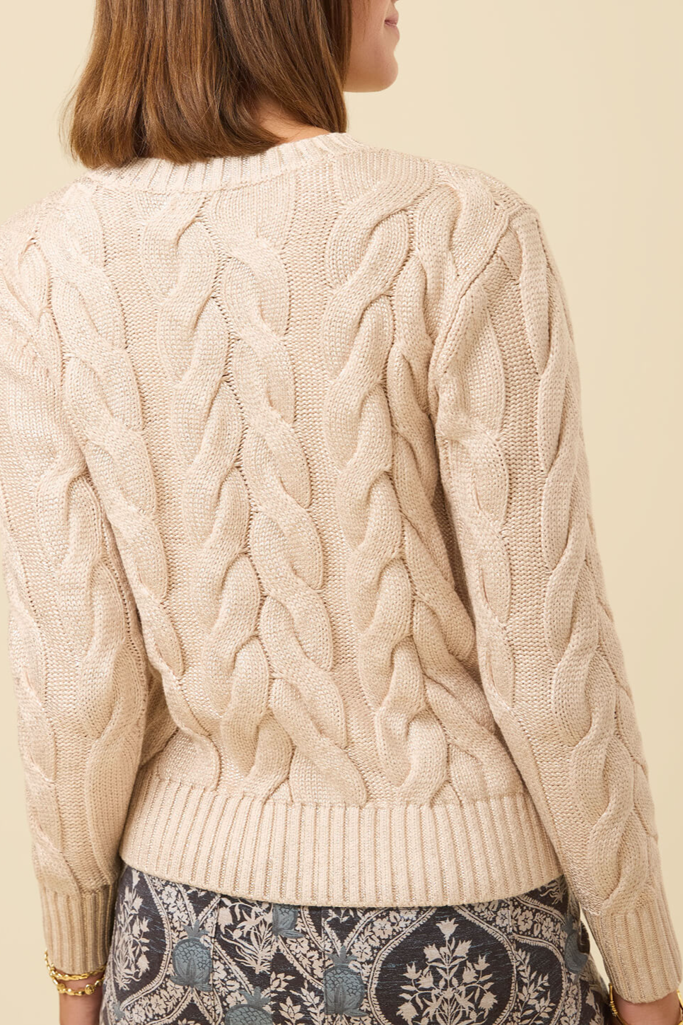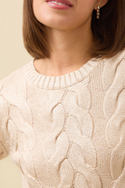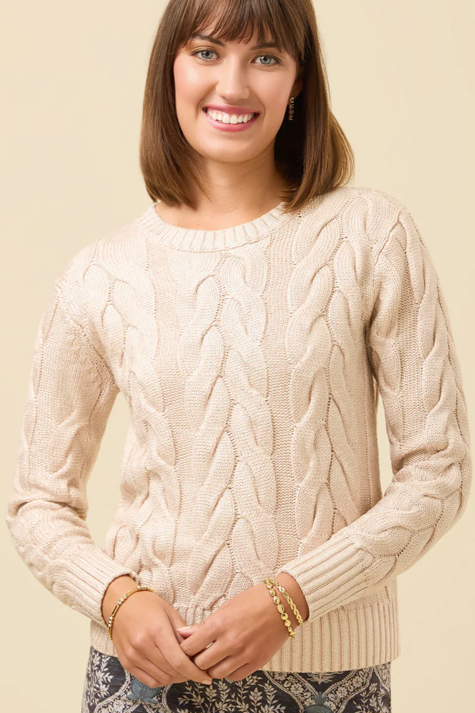 Chilly weather essential: our Florence Crewneck Sweater! Soft and comfortable with long sleeves and a relaxed fit, this 100% cotton sweater is adorned with a champagne foil that adds a luxe, eye-catching metallic detail. She's an elevated choice for both everyday outings and celebratory affairs.