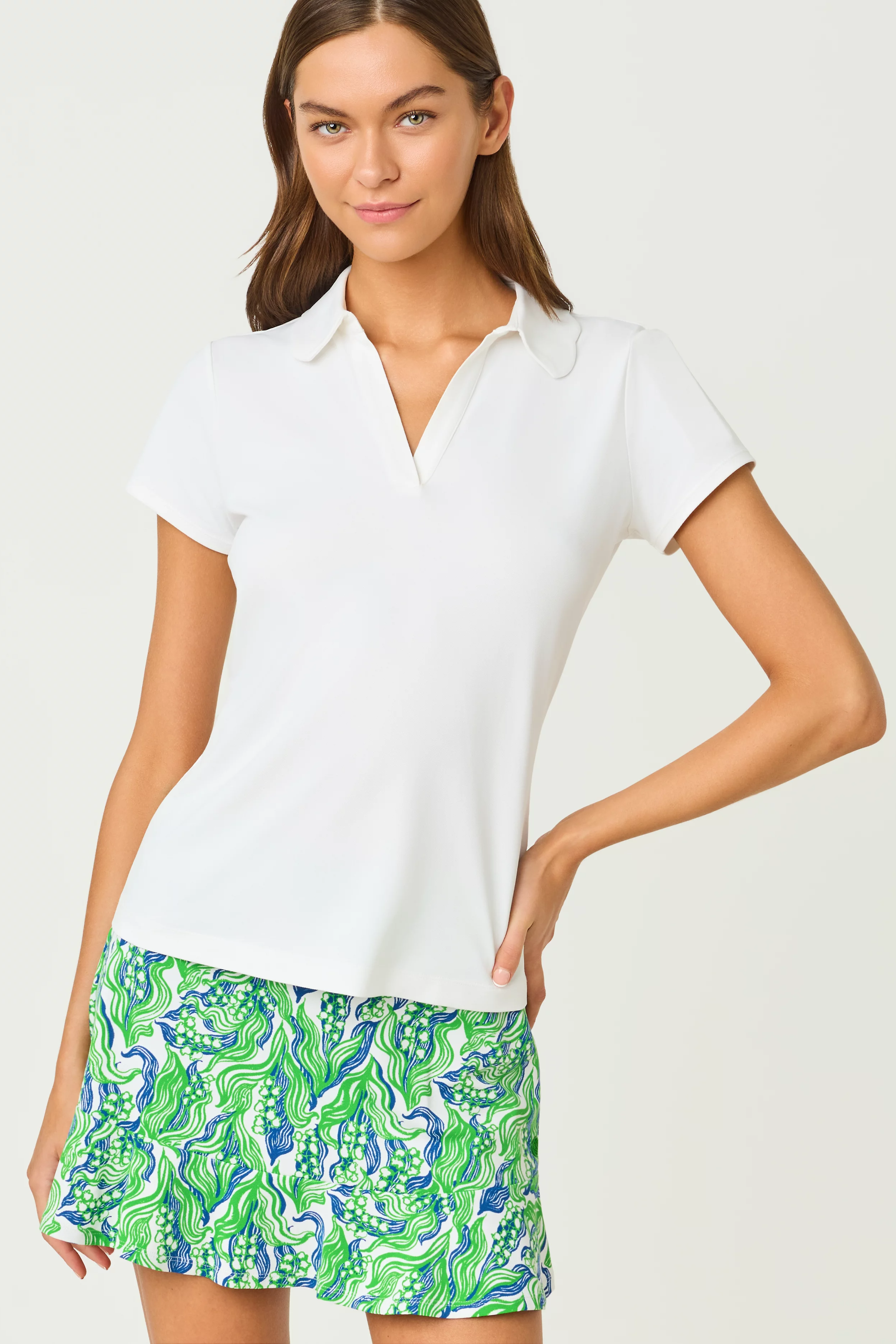 UPF 50+ Luxletic® polo with a scalloped collar.