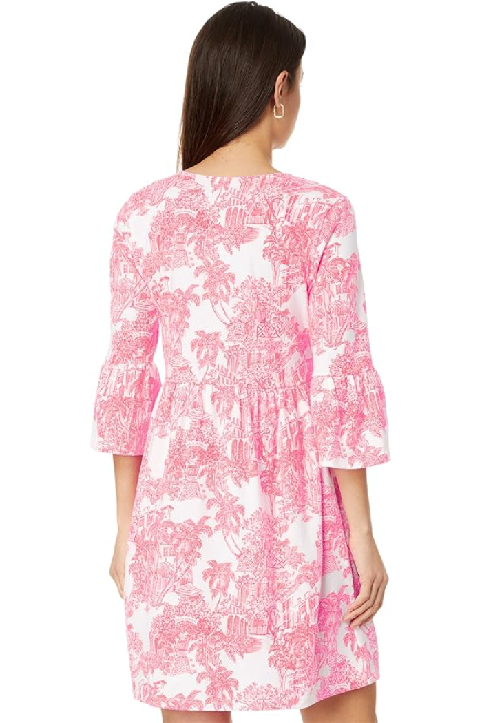 Turn heads in the Jannie V-Neck Dress, a swing-fit that effortlessly combines style and comfort. Featuring a flattering v-neck and playful ruffle-hem sleeves, this dress is your go-to choice for a chic and breezy look.