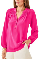 A tried-and-true wardrobe staple, our Elsa Silk Top can be dressed up or down. The Elsa has become a Lilly favorite thanks to its loose-fitting body, beautifully smocked neckline, and signature gold buttons at the placket. Pair with jeans, leggings, shorts, or a skirt to make this elegant pullover top your own.