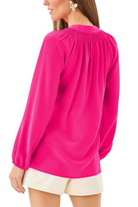 Easy fit, bracelet-length sleeve, pullover blouse.
