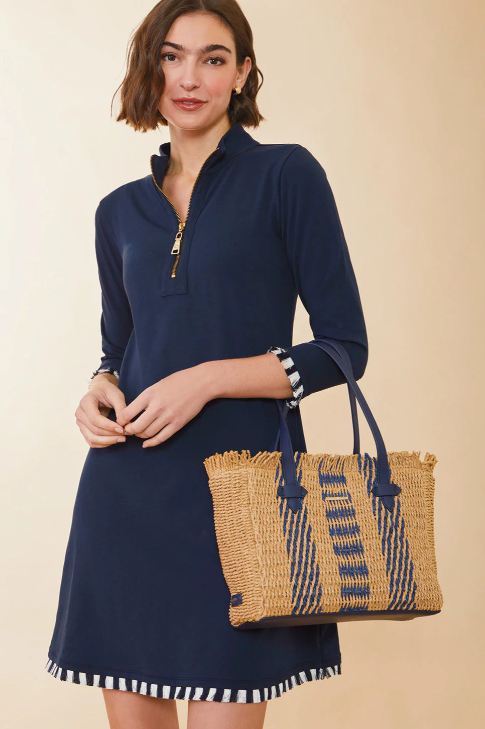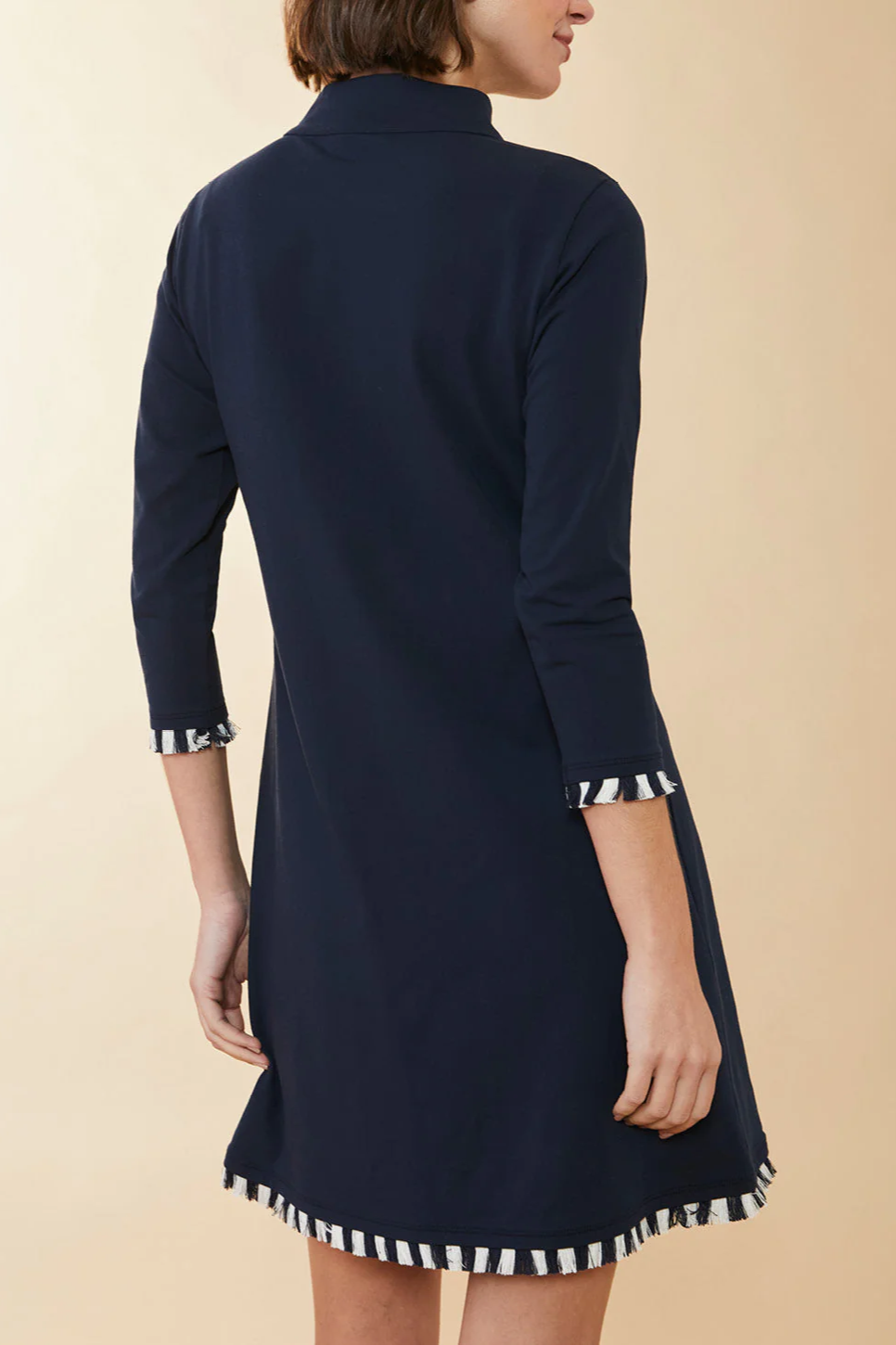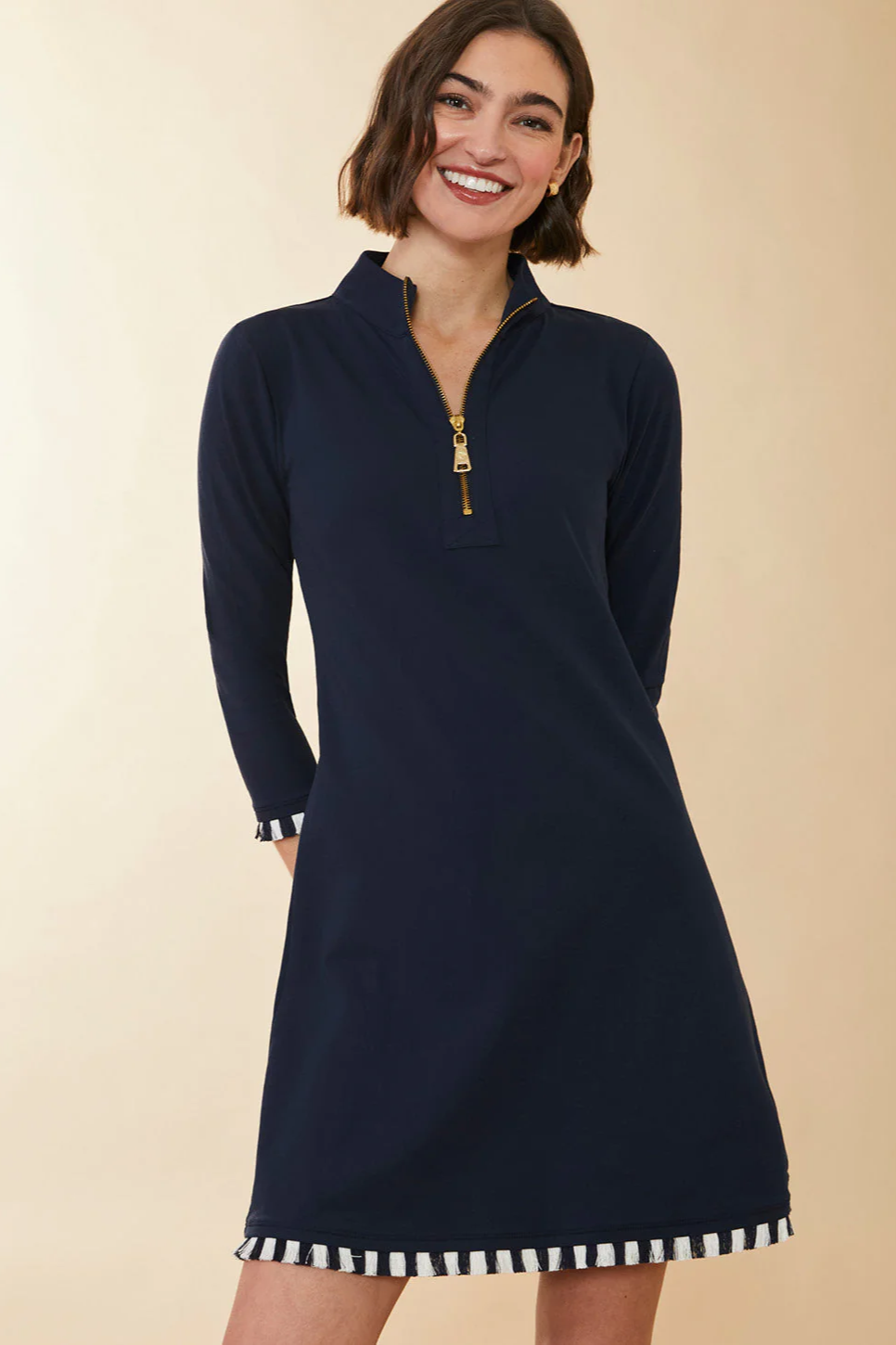 Our best-selling Peruvian cotton silhouette now features two-toned fringe! Dressing doesn't get any easier than this: our long sleeve, Nora Half-Zip Dress, an effortless A-line pullover dress made in a soft Peruvian cotton blend. Gently tug on the Spartina zipper pull, and the sophisticated stand collar opens to a V-neck. Style it up with tall boots or dress it down with cute sneakers.
