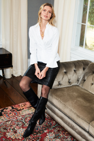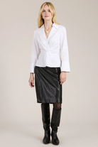 This shirt takes everything we love about a classic white shirt and elevates it with a unique twist front. It's the perfect staple with modern details. Pair it with everything from denim to our vegan leather skirts or pants.
