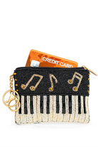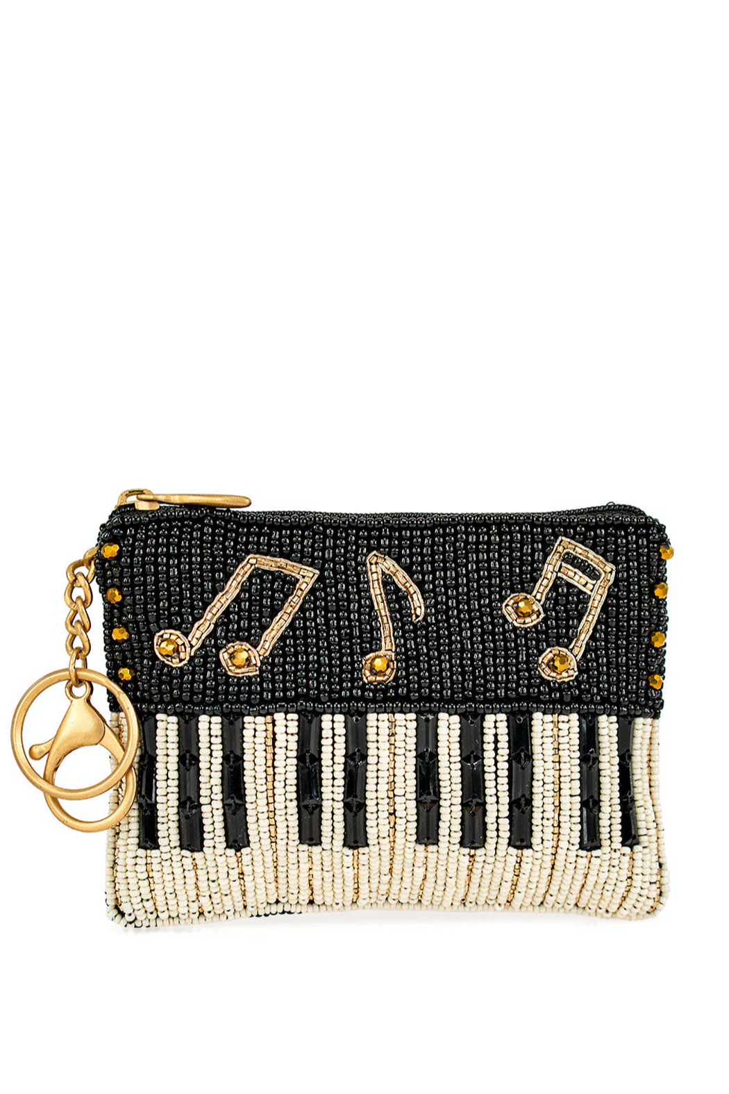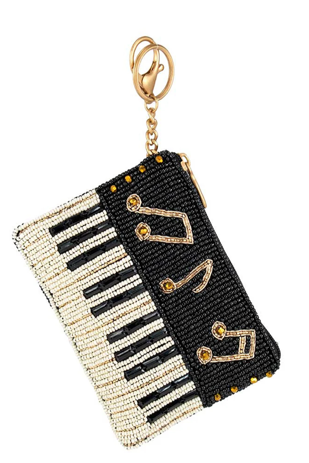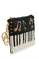 Bring music to your everyday look with this beaded piano coin purse. The easy open hook makes it easy to clip onto any handbag or belt loop.