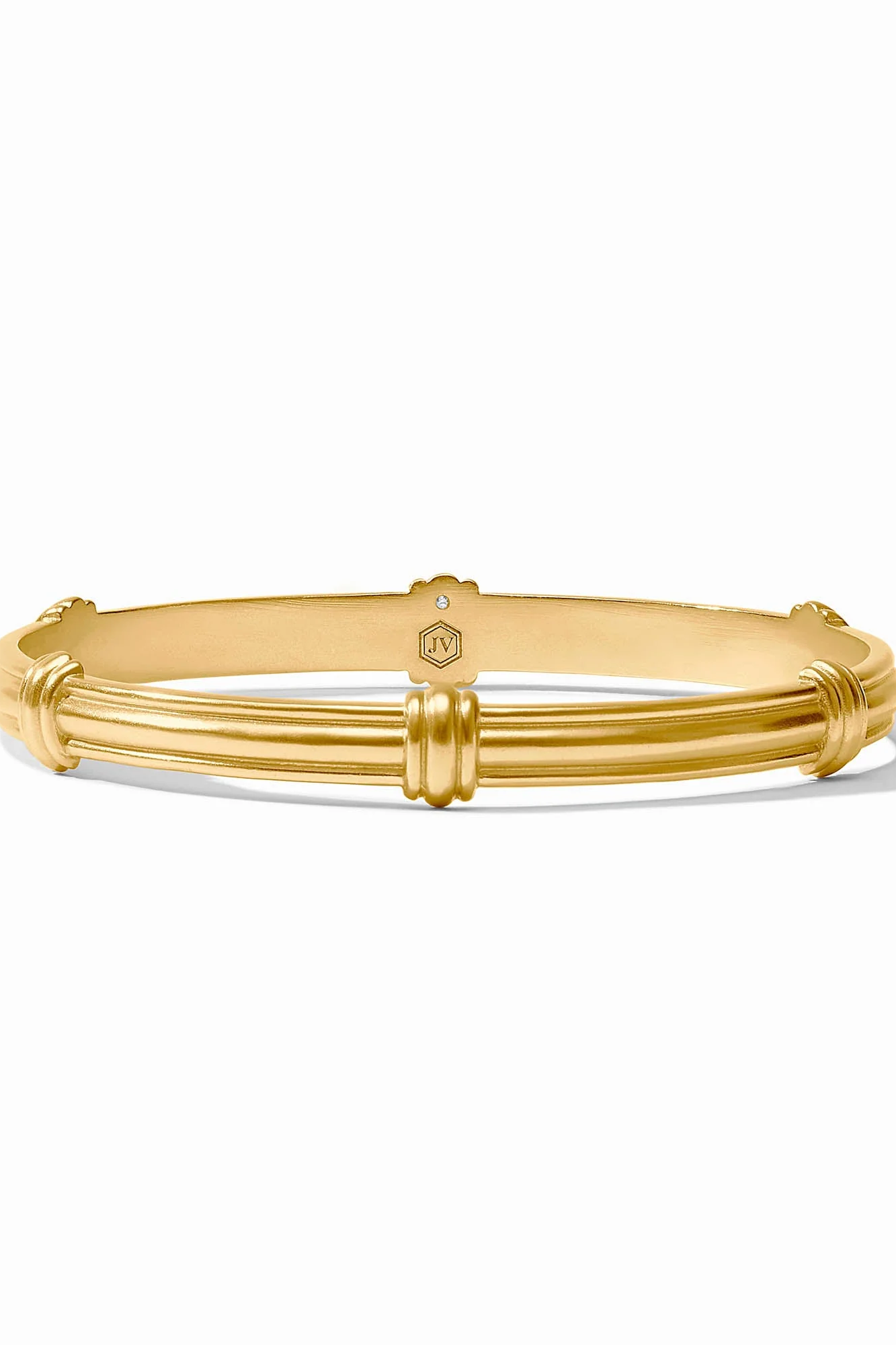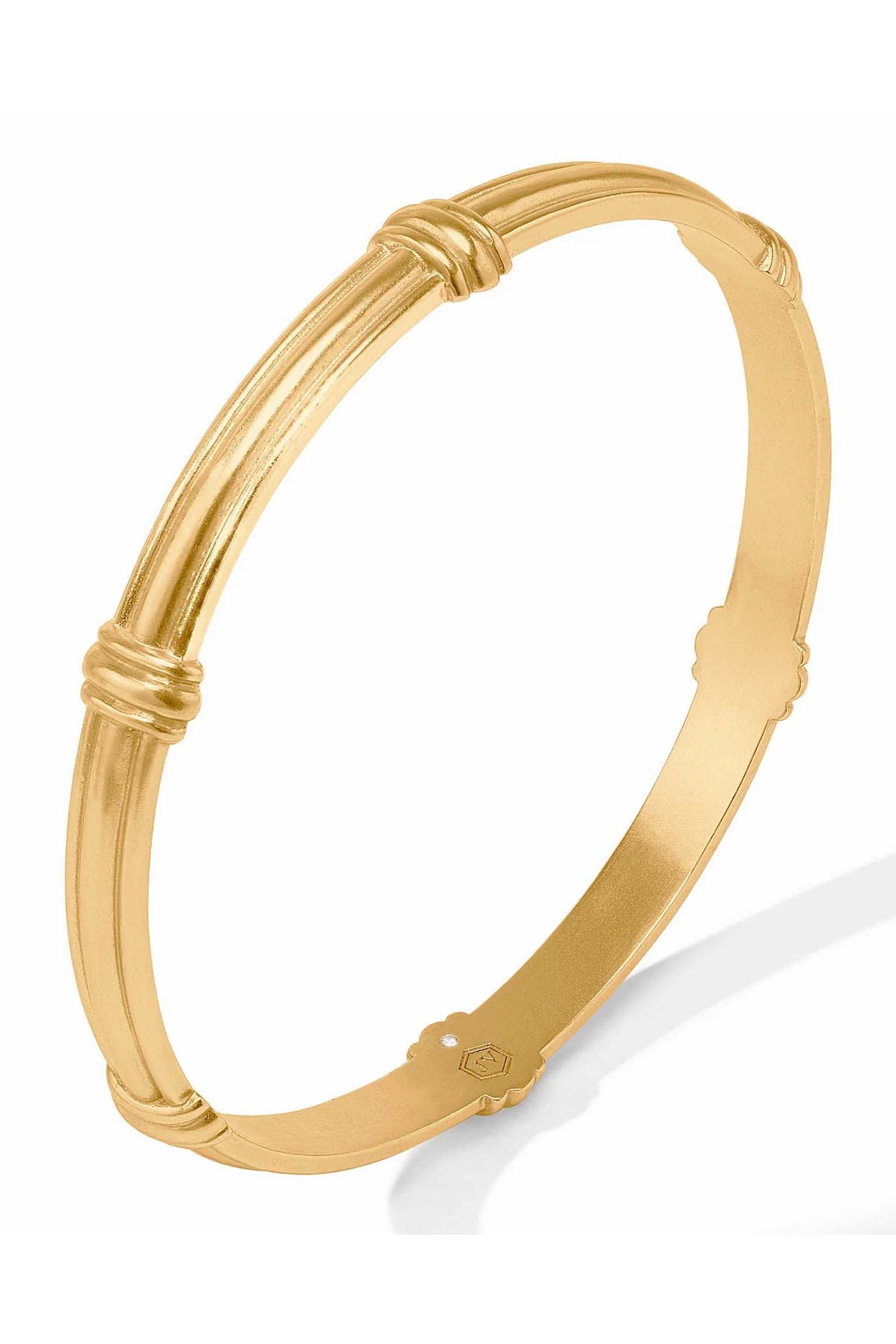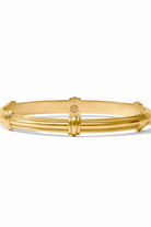 Shiny gold-tone bangles designed to stack for a layered look. The Portofino stacking bangle is a slim, ridged bracelet with knotted accents that catch the light. Julie Vos pieces are known for elegant, wearable designs and this bangle reads classic and refined. Wear it alone for subtle shine or grouped with other bracelets for a bold stacked effect.