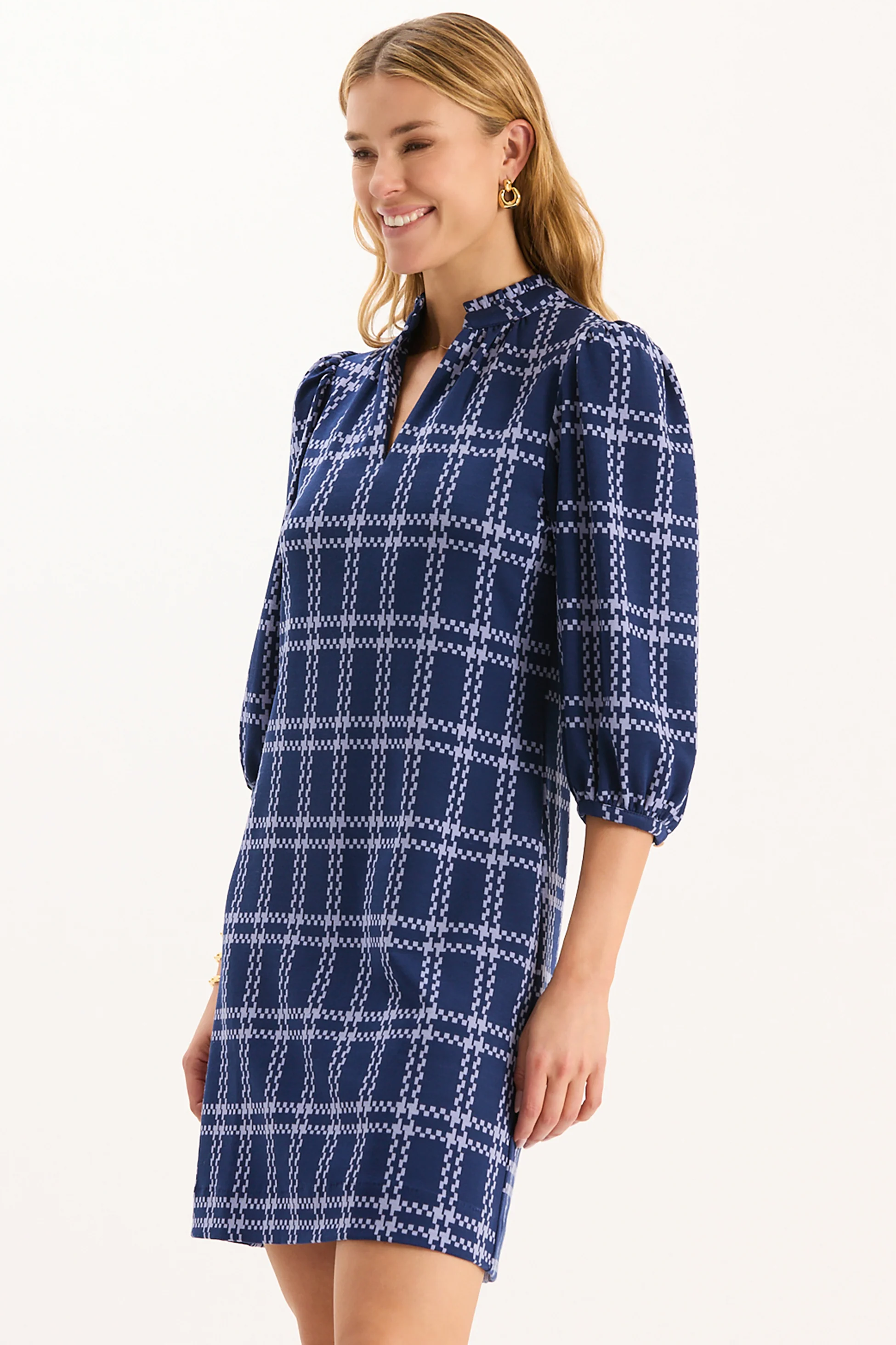 The best-selling Sherri dress is back, in all new patterns for the new season! The Sherri dress is made from our signature, wrinkle-free knit fabric for all-day comfort. The design features a notch neckline, three-quarter puff sleeves, and a streamlined shape that offers a flattering, easy fit. Both versatile and refined, it’s a go-to style that works from day to night and transitions seamlessly through the seasons.