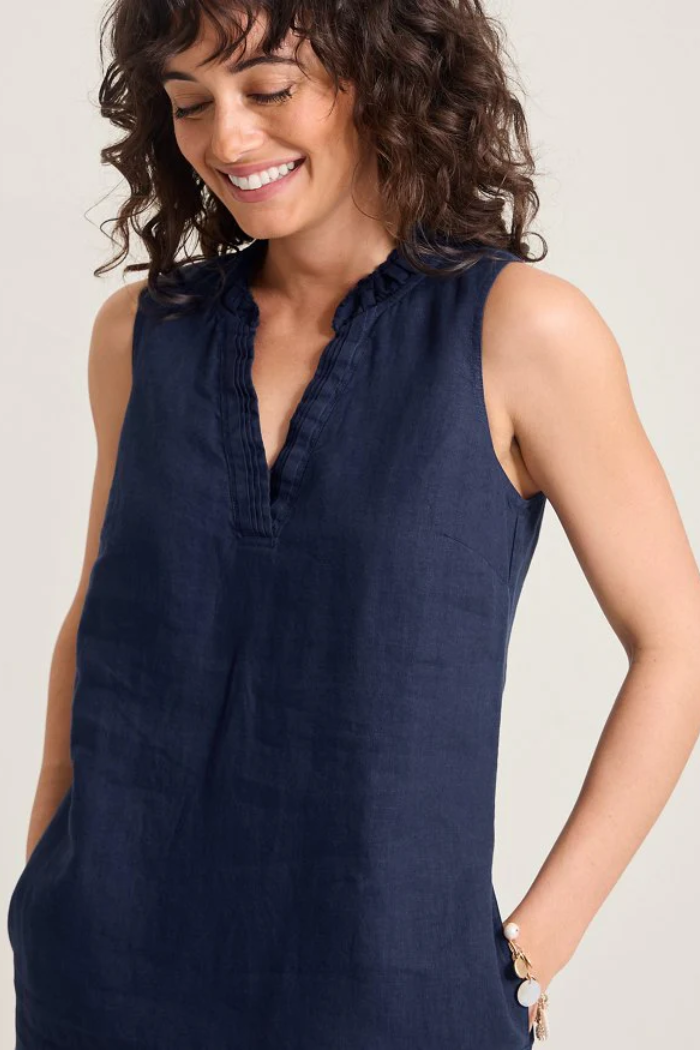 Meet the dress as bright and as bold as you. Made with lightweight Two Palms linen and a classic ruffle collar, you'll feel at your best no matter where you are.