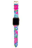 Tech-savvy lilly lovers, meet the apple watch band of your dreams! With gold hardware and your favorite lilly pattern on a leather band, you'll be living on beach time, all the time.