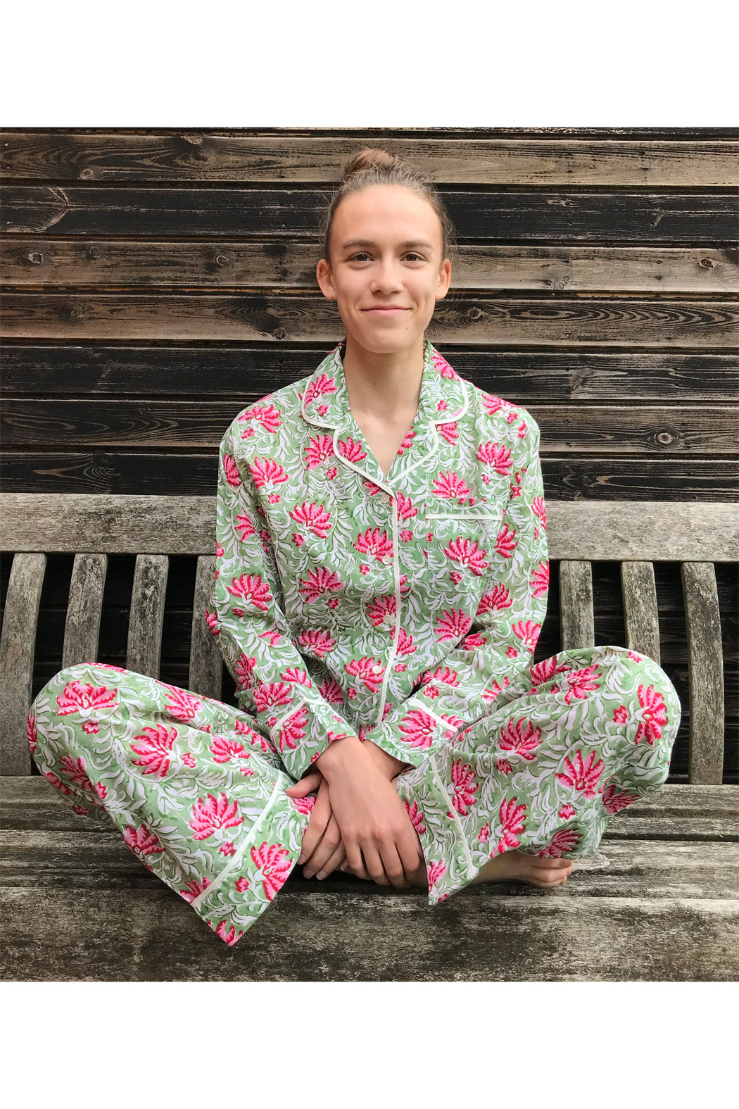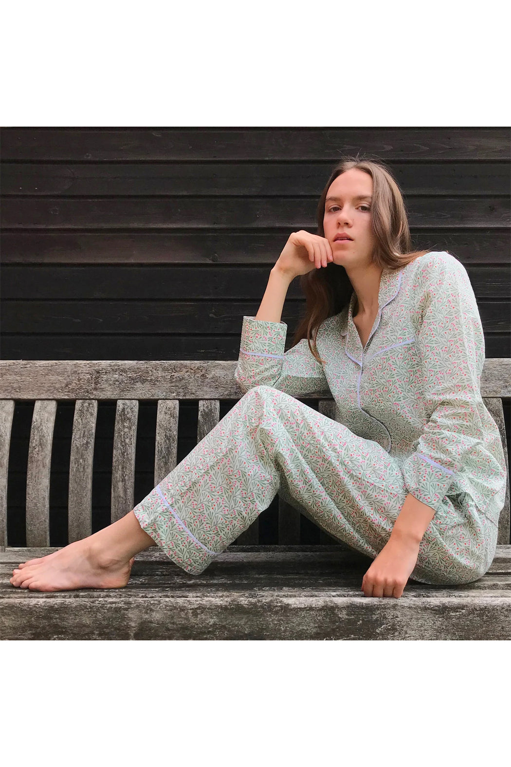 These pyjamas are made from 100% soft cotton. The pyjama jacket has a traditional pocket with flat piped detailing on the collar and cuffs and the trousers have a drawstring waist with piping detailing to match the top. They are roomy enough to be comfortable to sleep in or make perfect loungewear to cosy up in on the sofa. We spent time on the details to make sure these would be your favourite set of pyjamas ever!