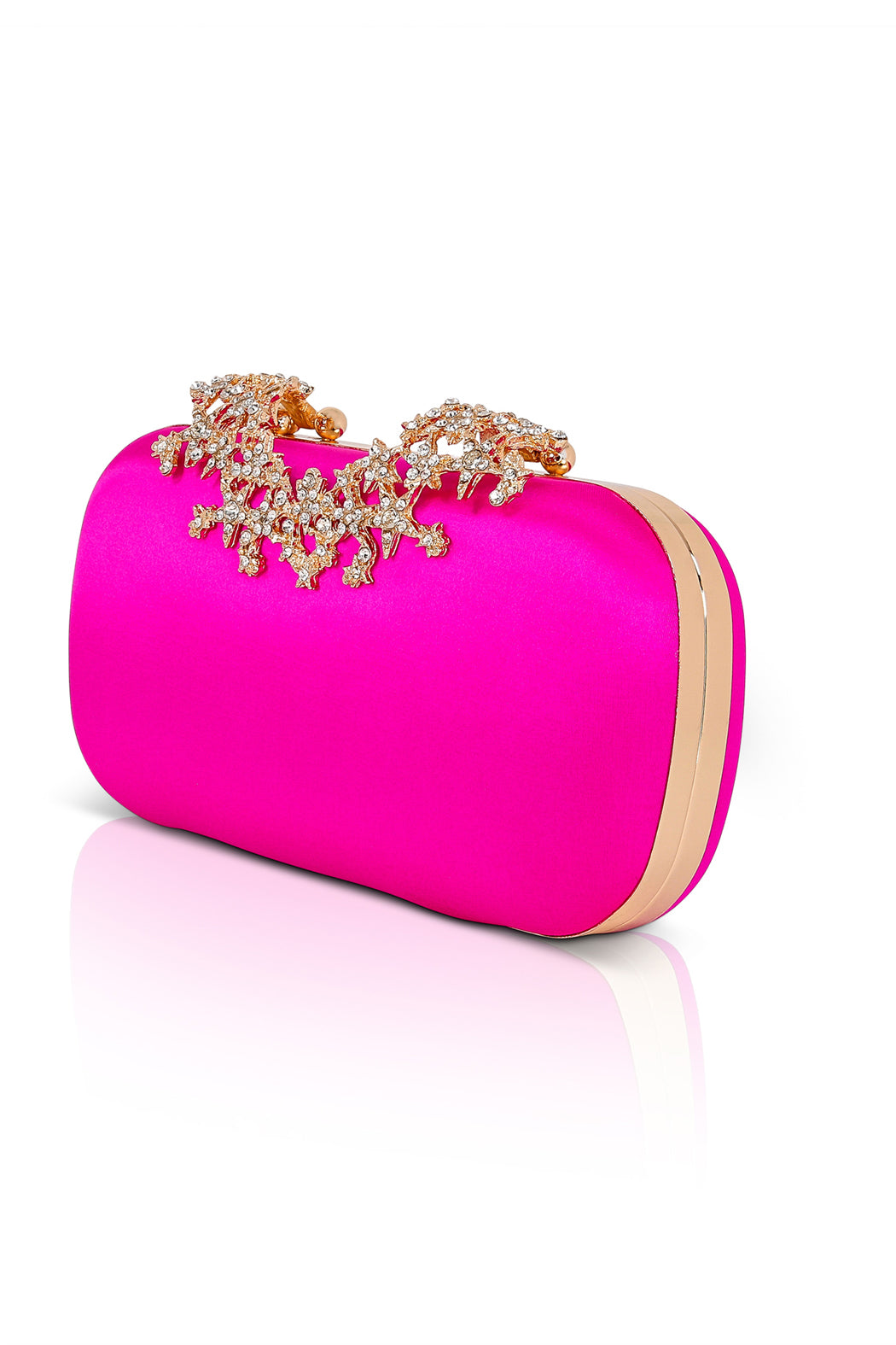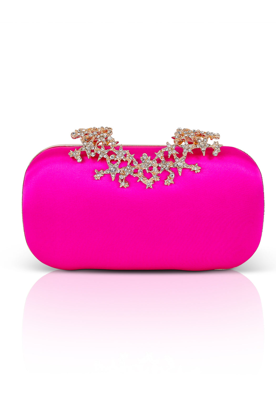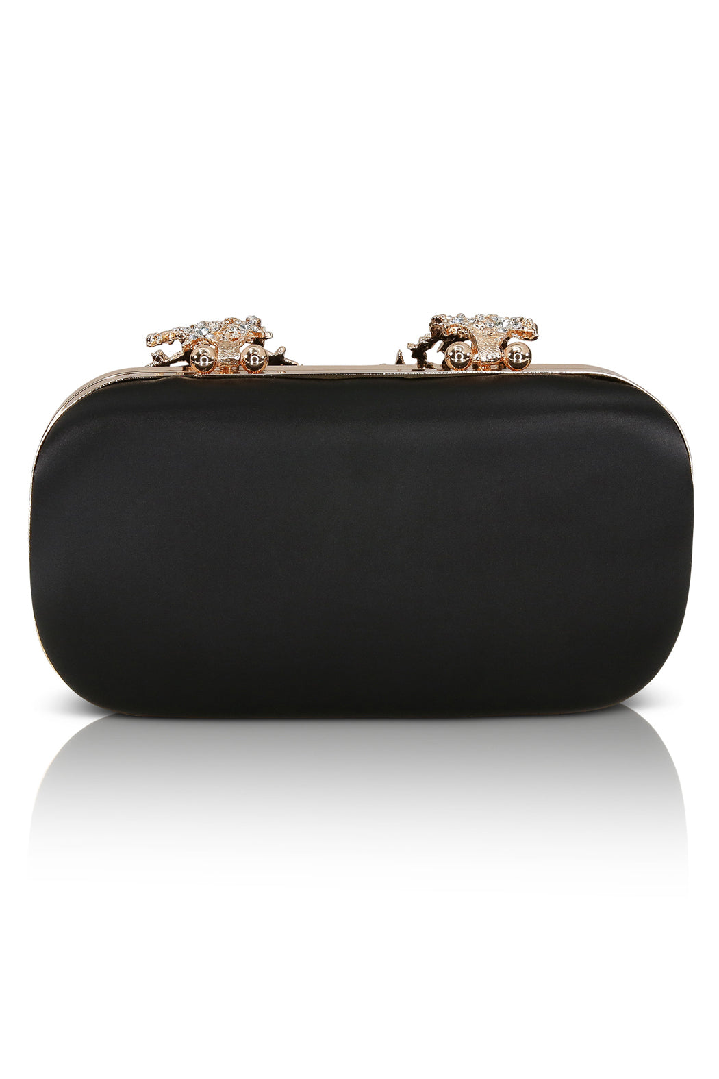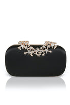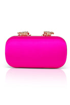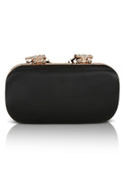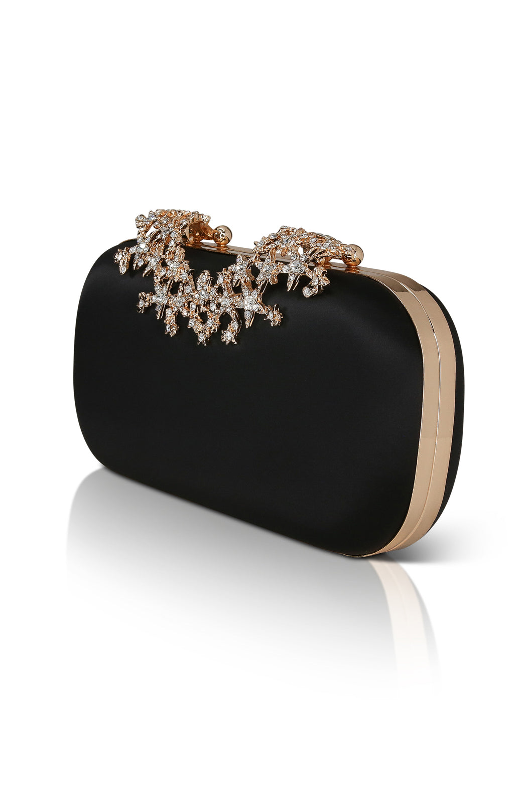 In a sparkling burst of glitz and glamour, the Lyra Starburst Clasp Satin Minaudiere is an undeniable standout among evening bags. It features a dramatic, jeweled lift clasp that is accentuated with gold-toned hardware for an elegant, feminine touch—perfect for wearing on a night out to add just the right amount of allure and sophistication to any special ensemble.