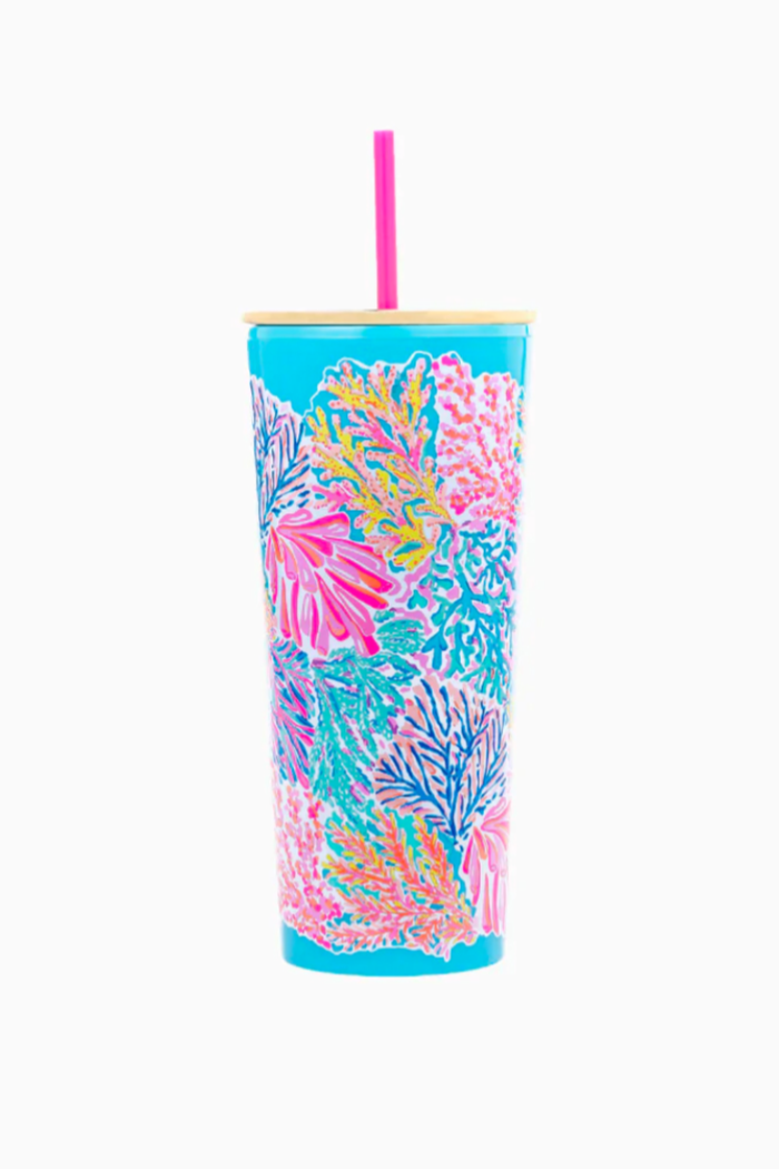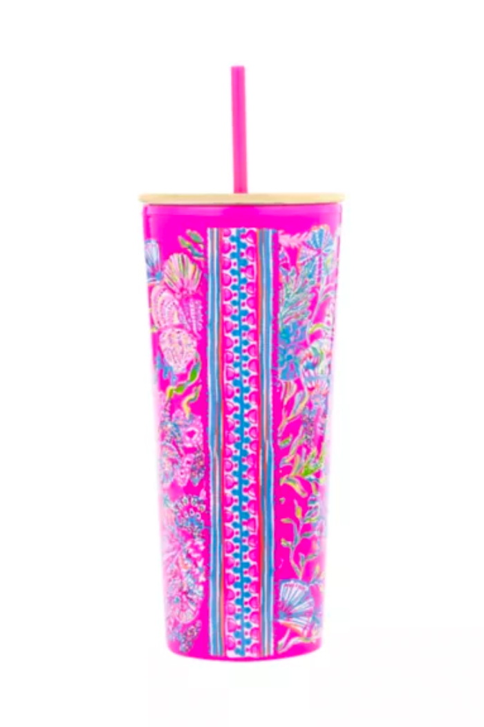 Sip in style with this 24-ounce acrylic printed tumbler. Made of BPA-free plastic and fashioned with the latest Lilly prints, a luxe gold lid, and a reusable straw, this insulated tumbler is fit for sipping with Lilly Pulitzer herself!
