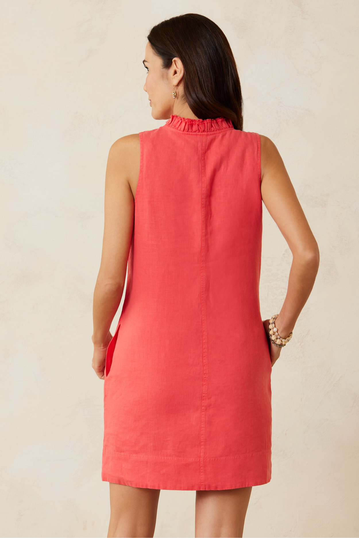 Meet the dress as bright and as bold as you. Made with lightweight Two Palms linen and a classic ruffle collar, you'll feel at your best no matter where you are.