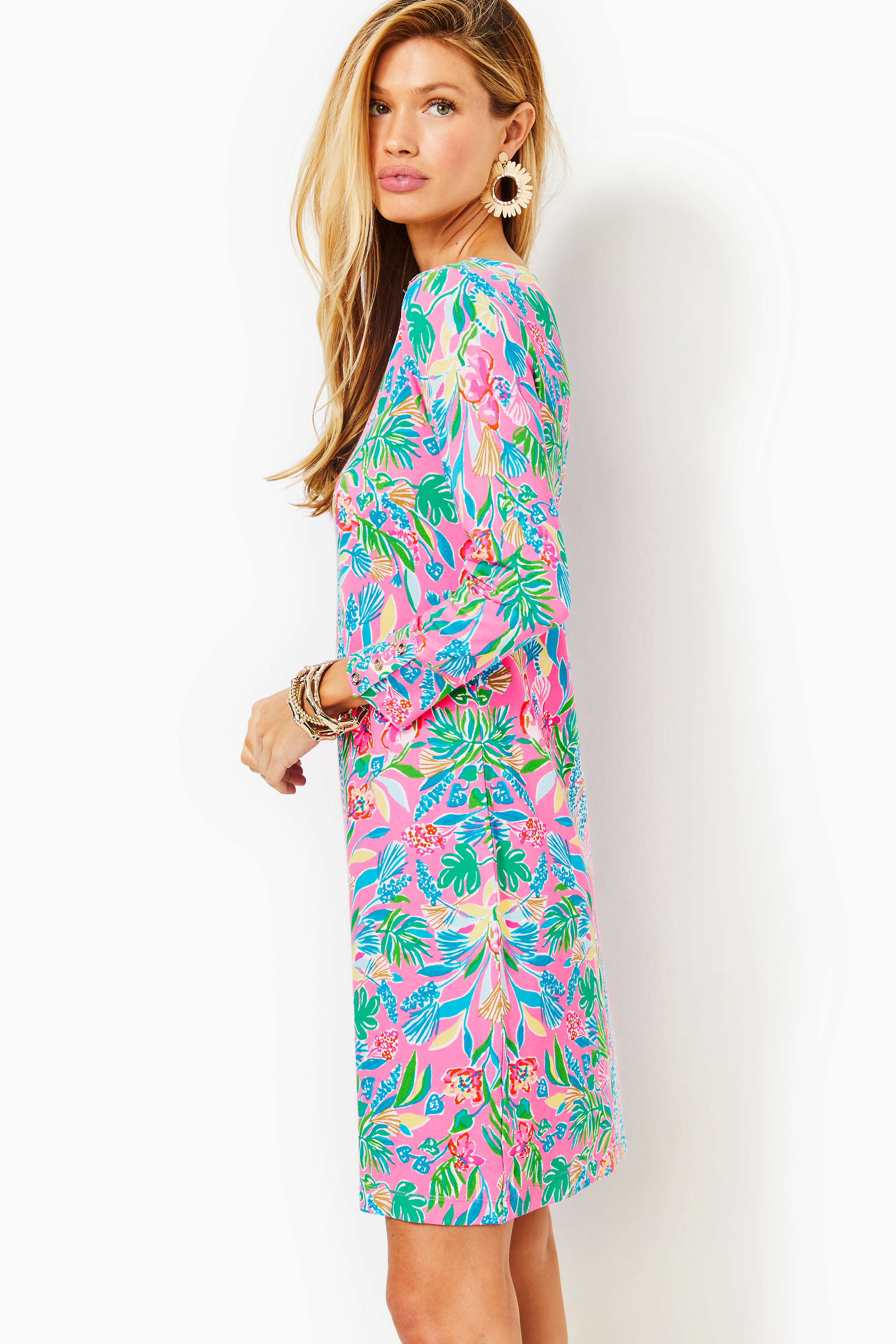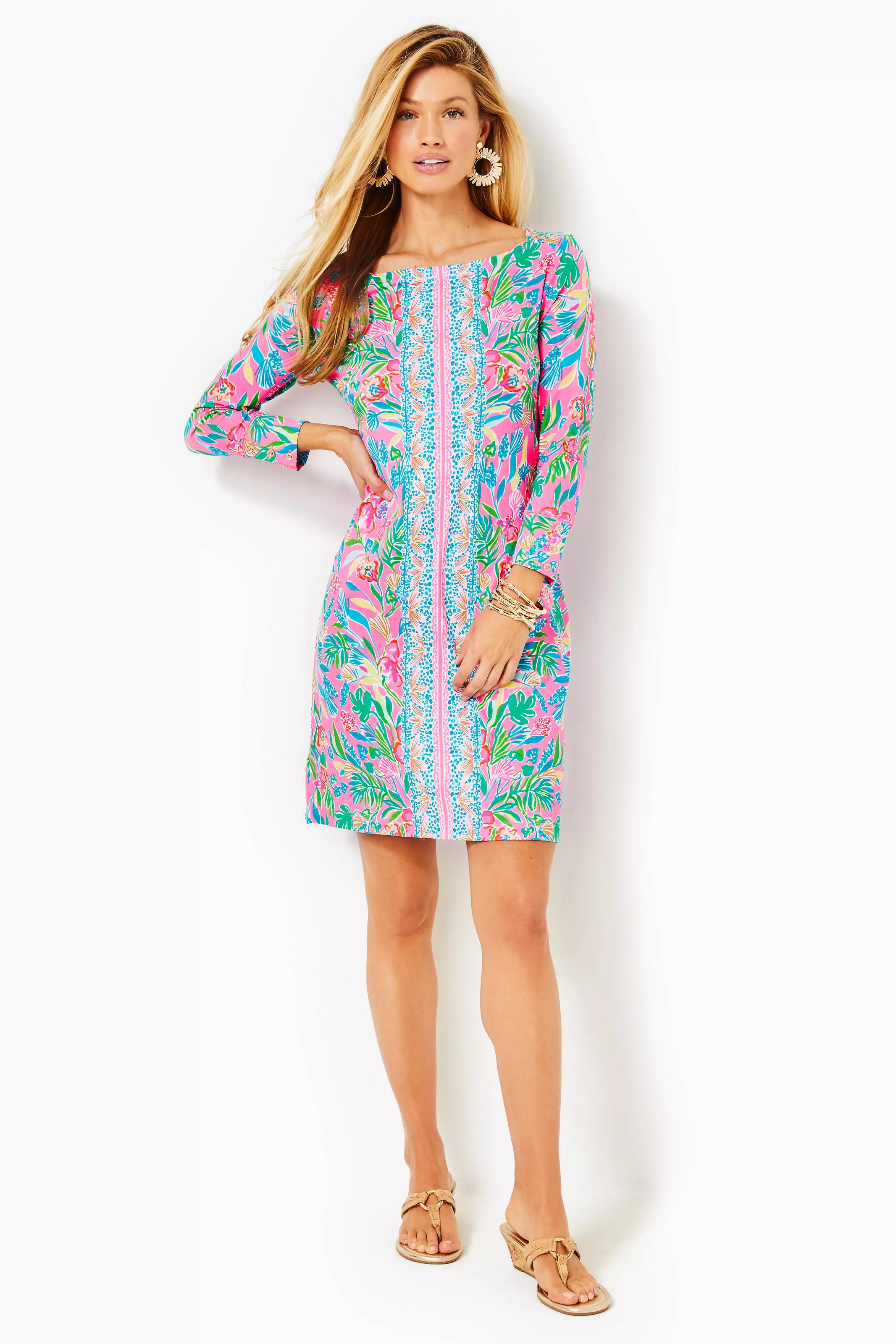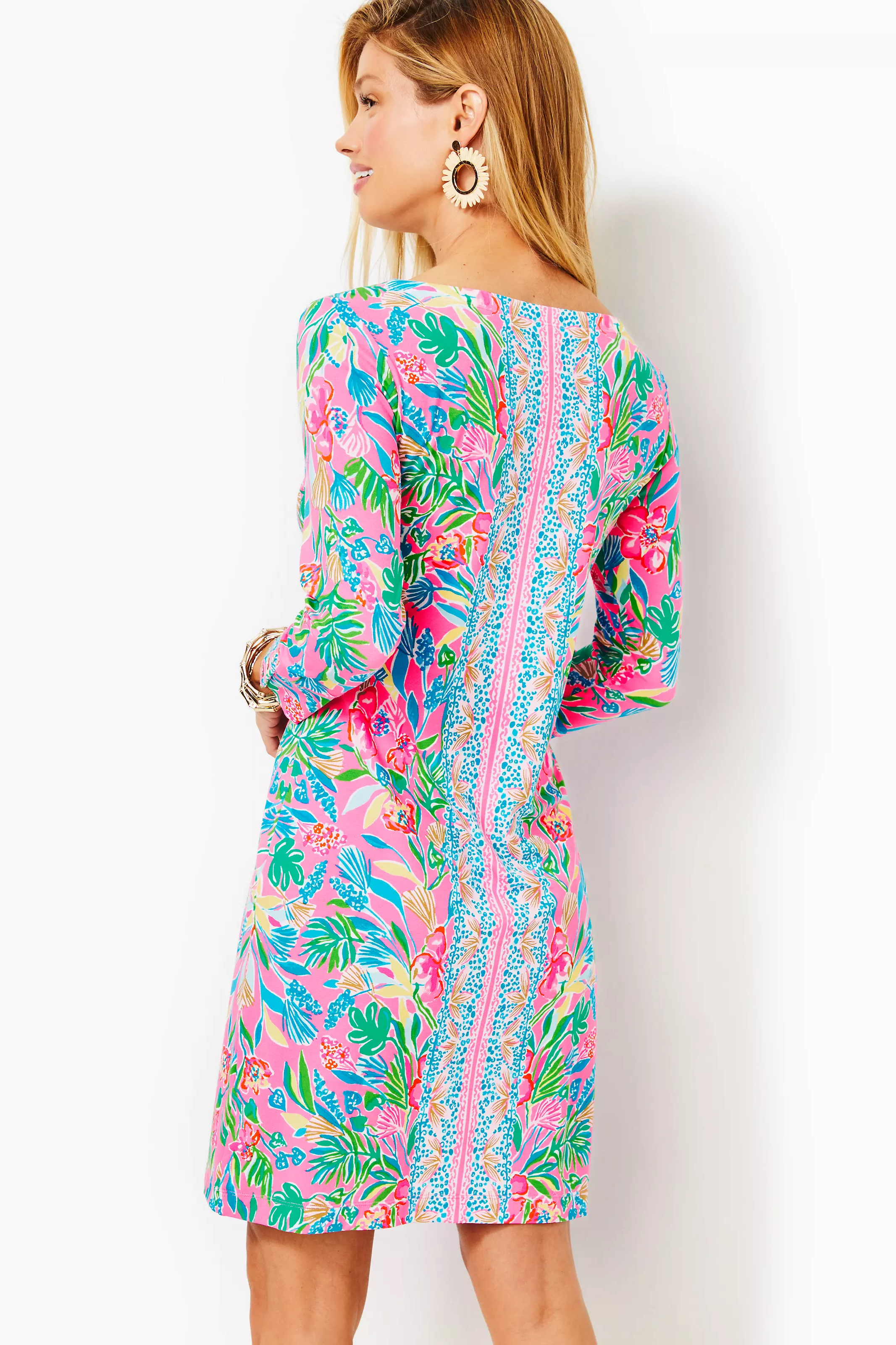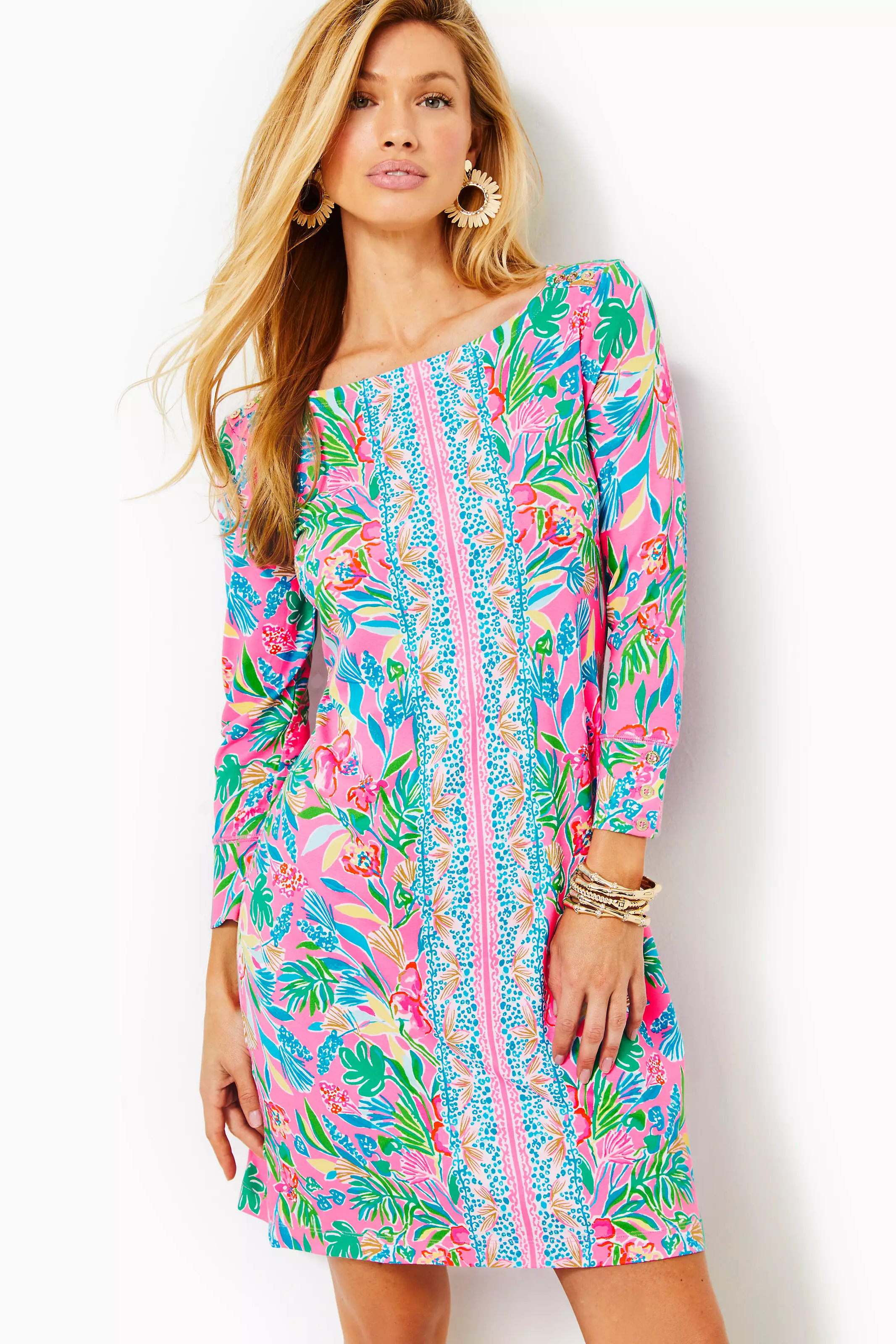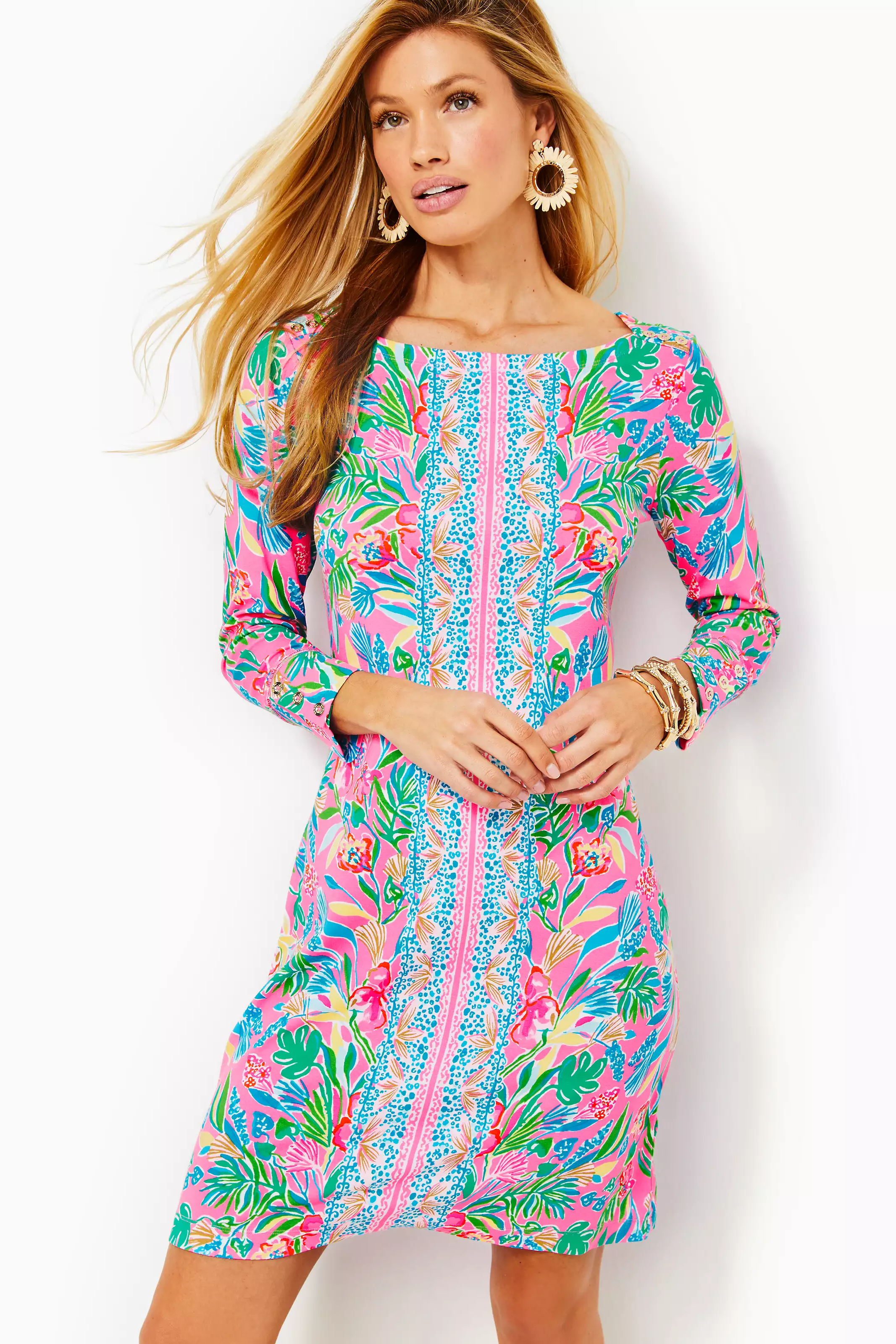 Made from our UPF 50+ Solsafe® fabric, the Sophie Dress is a fan favorite for its versatile styling. The straight fit, 3/4 sleeves, and flattering boat neckline make it the perfect choice for any occasion under the sun. The finishing touch? Elegant masterpiece print details.